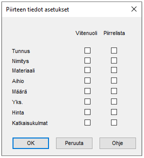 Ohjelma kerää kaikki piirustuksessa olleet pintamerkit ja lisää ne osoittamaasi paikkaan.