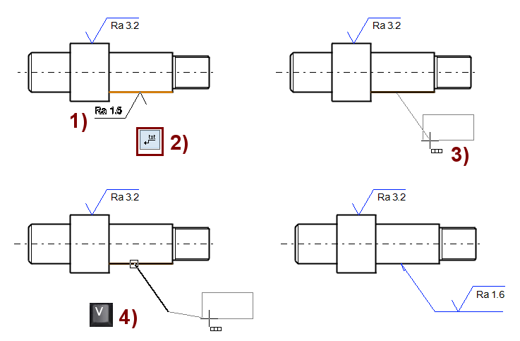 Em. kuvatut merkin sisällön korjaukset ja merkkien poisto toimivat kaikille koneensuunnittelun merkeille samalla tavoin.