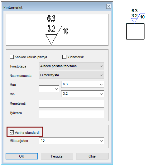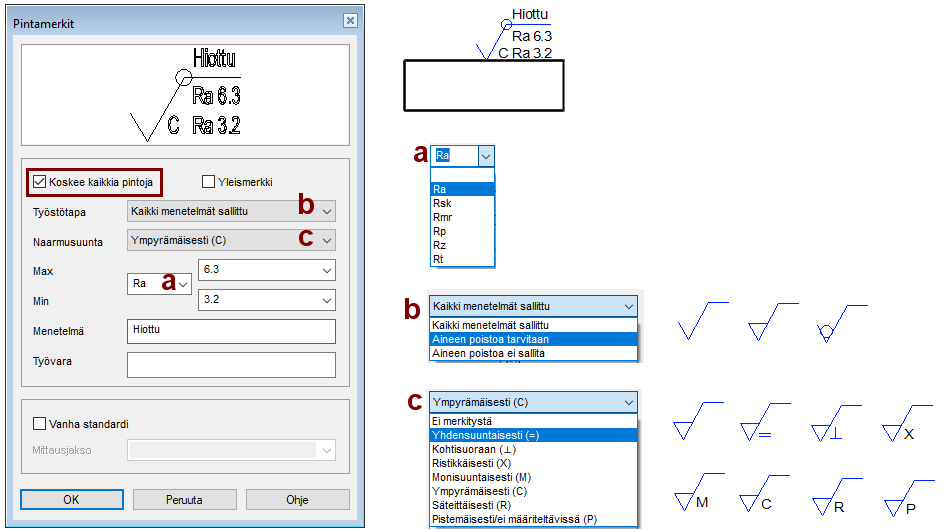 Kuva a = Voit valita pinnan karheuslaskennan menetelmän.