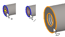 Osoita sylinteripintoja tai ympyrä/kaari-viivoja.