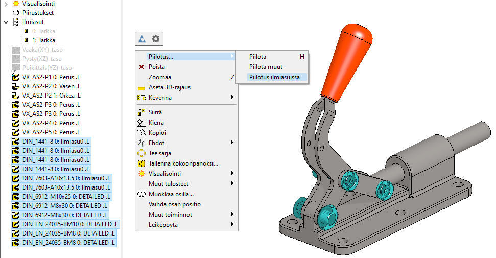Esim. tilannekohtainen toiminto: Lisää > Malli (projekti VX_COURCE_ASSY).