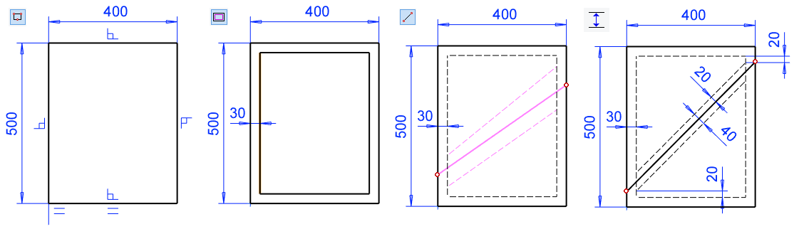 Lisää Ulkokehän viivoille offset-viivat (30) ja muuta ne ominaisuuksiltaan apuviivoiksi.
