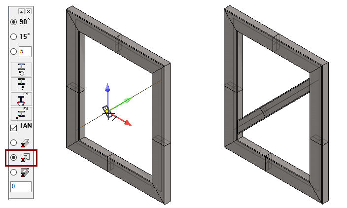 Huomaa, että profiilikehän koko muuttuu välittömästi, eikä mallia tarvitse erikseen ratkaista, kuten ensimmäisessä harjoituksessa, jossa mittaa muutettiin ohjauskäyräosan luonnosta muokkaamalla.
