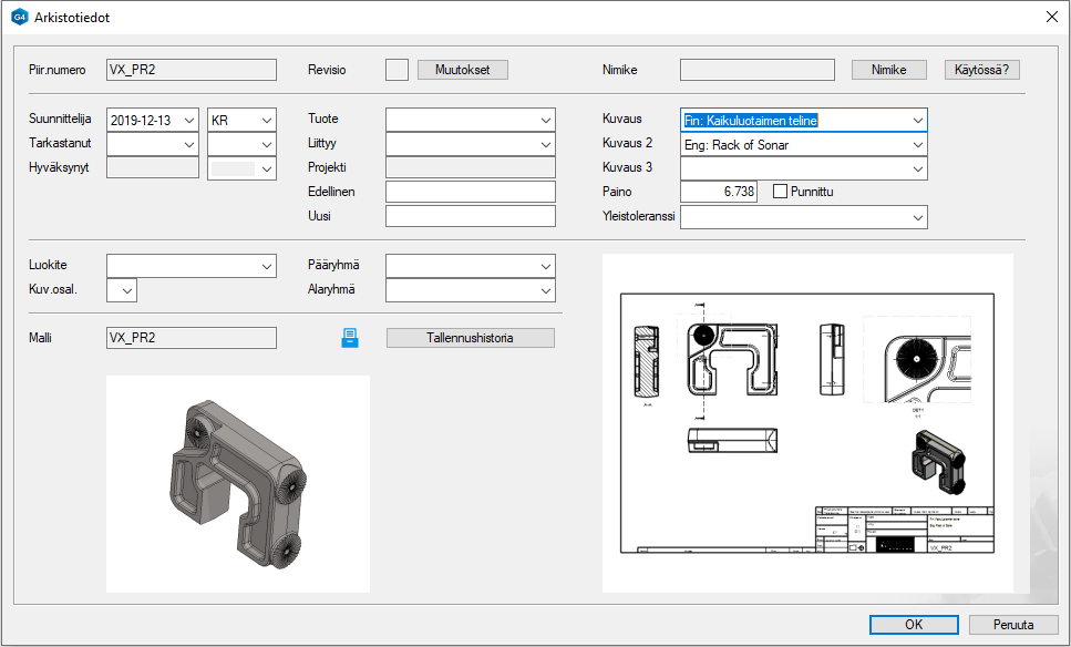 Tunnus: Hyväksy tai muuta piirustuksen tunnusta (=Piirustusnumero).