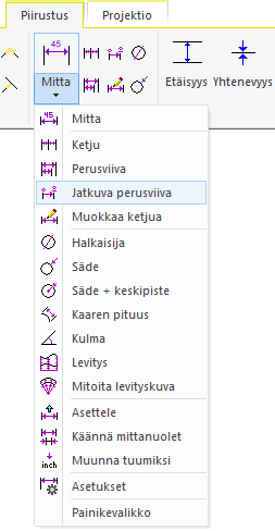 Lisää mitoitukseen liittyviä toimintoja saat Mitta-kohdan esivalintakolmion avulla.