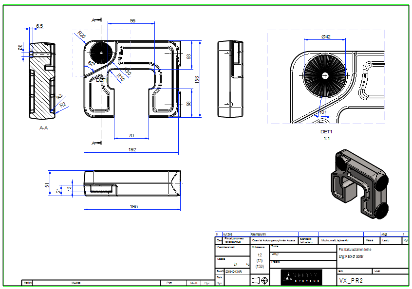 Vertexin piirustuslomake skaalautuu automaattisesti mittakaavan mukaan, joten sitä ei tarvitse vaihtaa, jos vaihdat piirustuksen mittakaavaa.