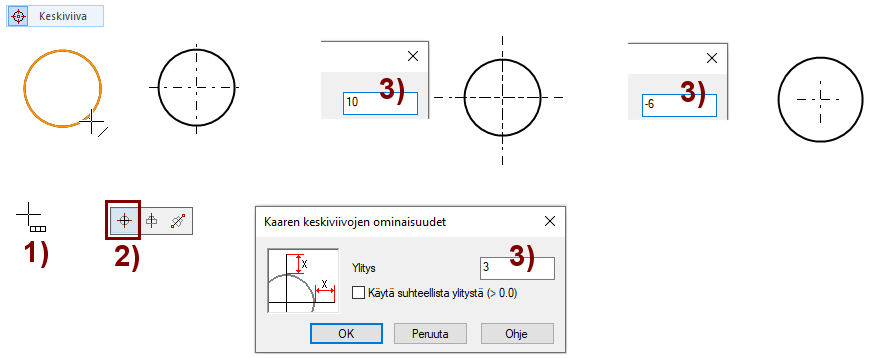 Lisää keskiviiva suuntapisteiden ohjaamana