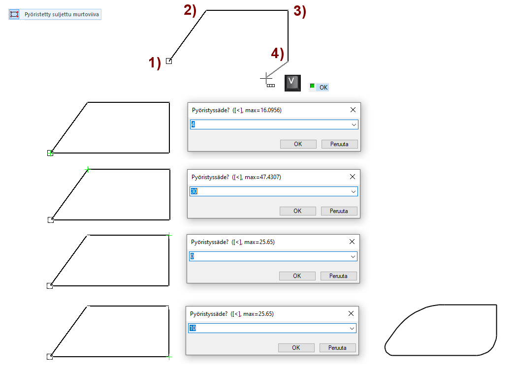 Osoita monikulmion ensimmäisen särmän suunta. Kuva 3).