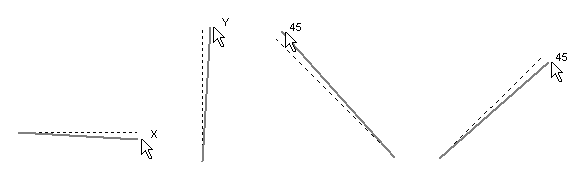 Kun olet piirtämässä viivaa ja kohdistin on lähellä vaaka-, pysty- tai 45°-suuntaa, niin kohdistin ehdottaa suuntalukitusta. Jos tällöin napsautat kohdistinta, niin viivan suunta lukittuu, sen sijaan että osoittaisit viivan päätepisteen. Vasta seuraava osoitus määrittää tällöin viivan päätepisteen paikan.