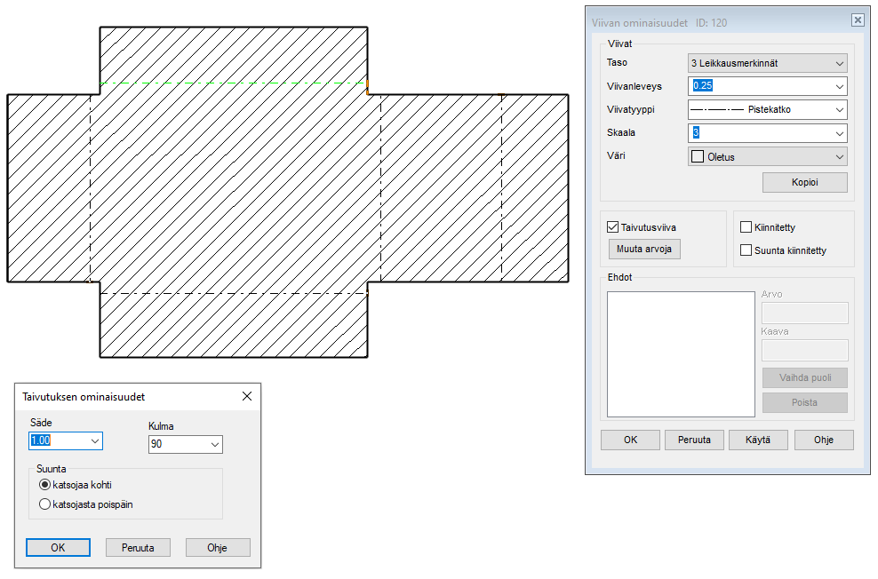 Toiminto: Älykäs viivaketju > Taivutusviiva