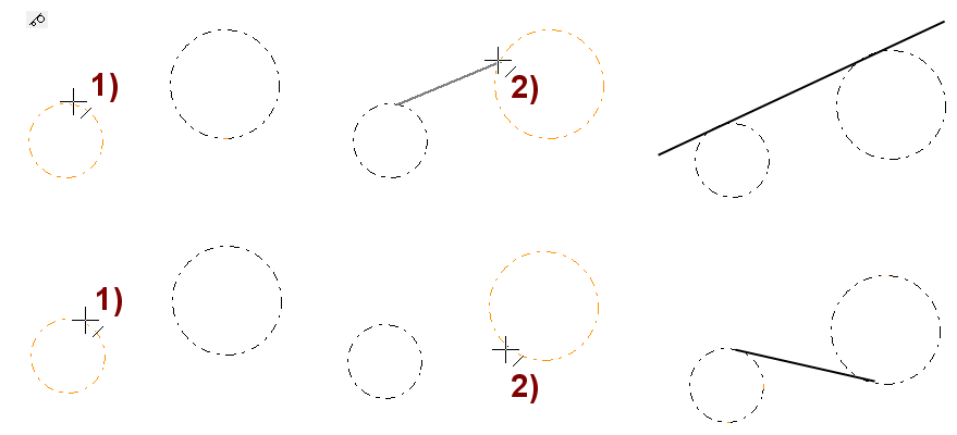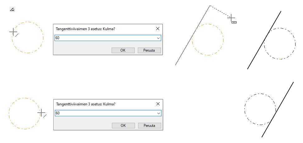 Tangenttiviivaimen kaari-kaari asetus.