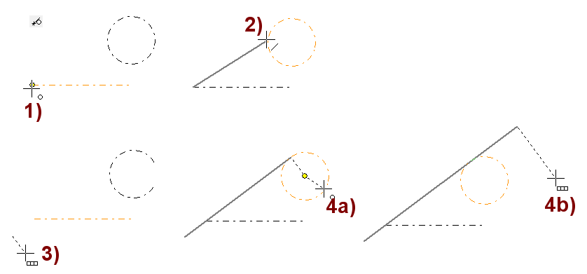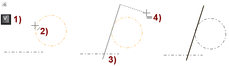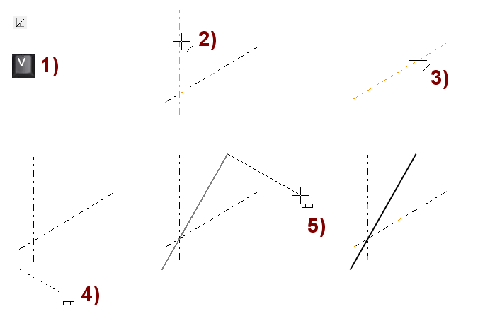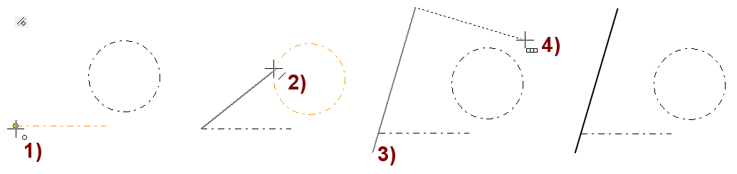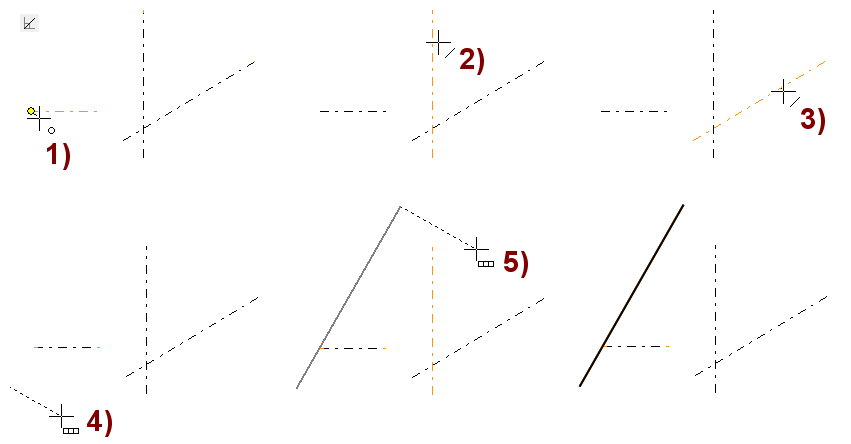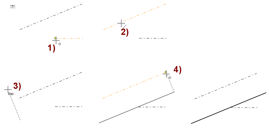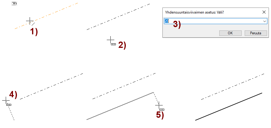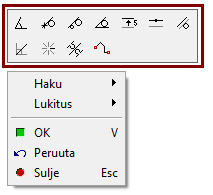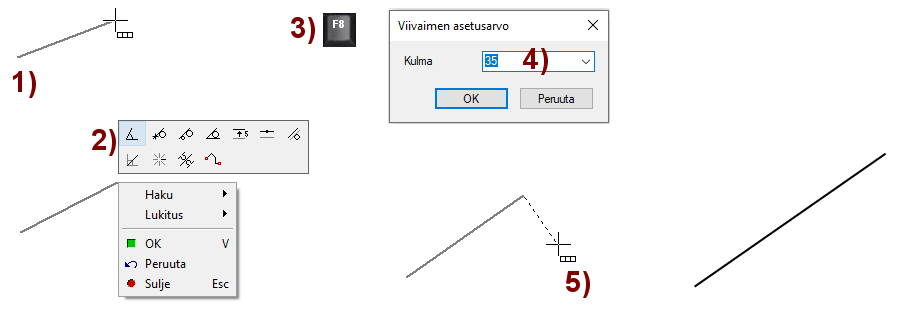 Ohjelma piirtää suuntalukitulle viivalle kohtisuoran avuviivan, jonka avulla voit osoittaa piirrettävän viivan alku- ja loppupisteen muualta geometriasta.