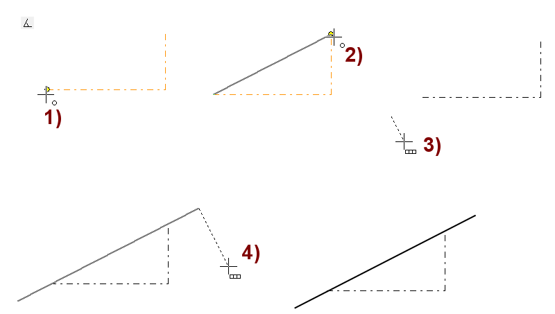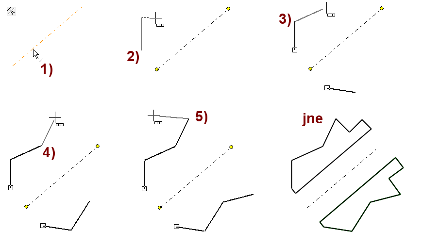 Huomaa, että vaikka välillä piirtäisit muita viivoja tai käyttäisit muita toimintoja, niin ortogonaaliviivain on voimassa, kun palaat joko murtoviivan tai kahden pisteen viivan toimintoon.