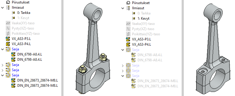 Tässä on tarkoitus muodostaa pääkokoonpanoon kaksi ilmiasua, tarkka ja kevyt. Tarkassa ilmiasussa näkyvät kaikki osat ja kevyessä ilmiasussa näkyvät ne osat, jotka kummassakin alikoonnassa näkyvät niiden kevennetyssä ilmiasussa.