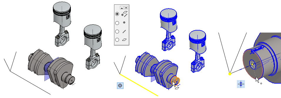 Lisää kampiakseli ja ed. mallinnettu koonta kokoonpanoon