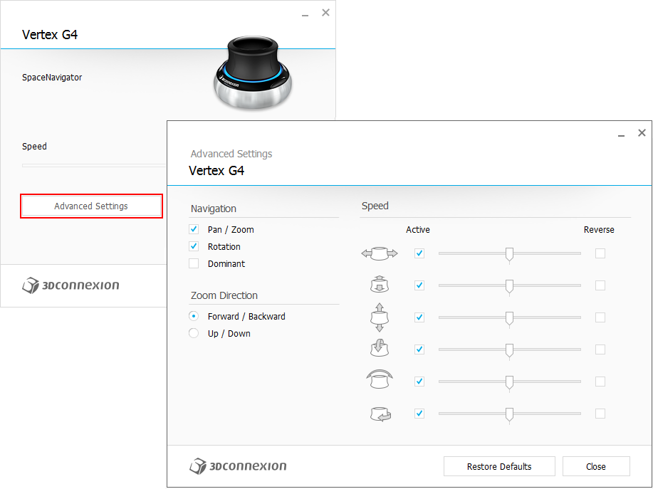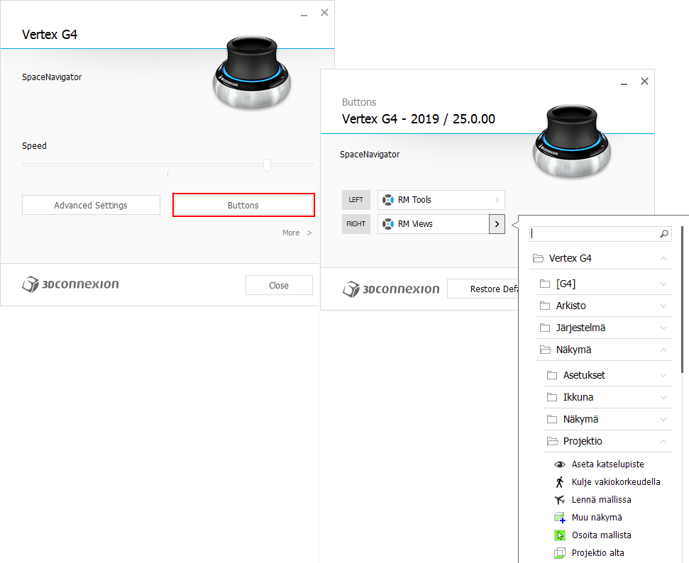 Käynnistä Vertex uudelleen 3Dconnexion-ohjaimen asentamisen jälkeen.
