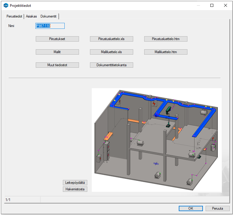 Piirustukset ja Mallit-painikkeella voit tarkastella projektiin kuuluvia malleja tai piirustuksia listana.