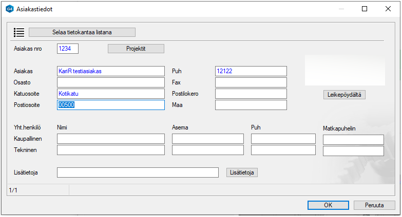 Tämä siirtää tiedot asiakaskantaan ja avaa asiakaskortin muokattavaksi.