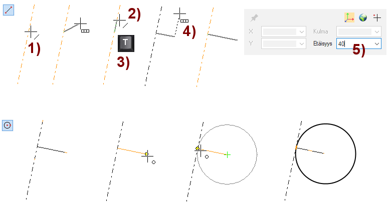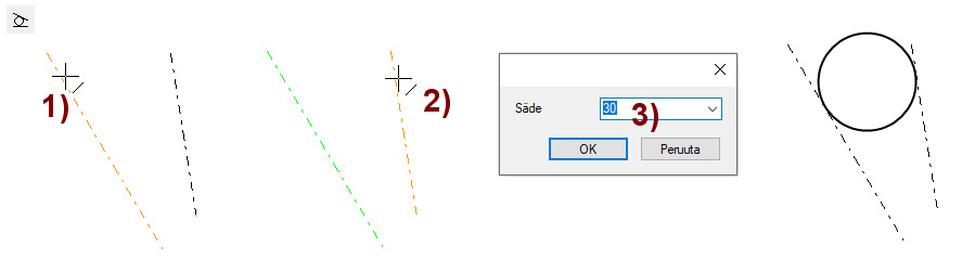 Aputoiminto: Kahta viivaa sivuava ympyrä