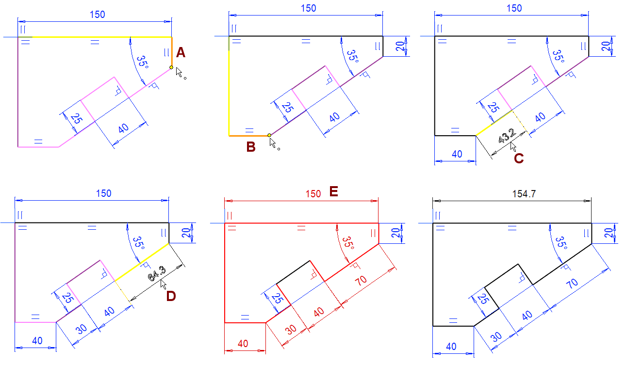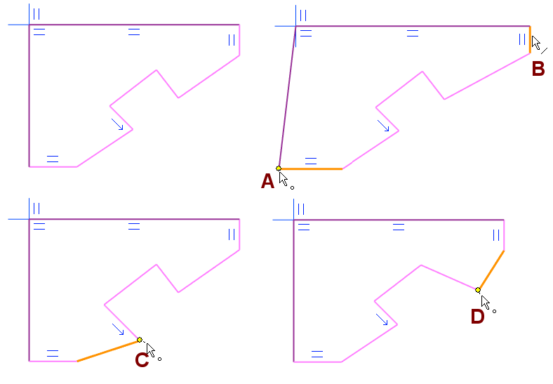 Tumma violetti. Kun viivan toinen pää tai ympyrän tai kaaren keskipiste on määrätty. Myös viiva joka on kiinnitetty, mutta jonka päätepiste tai päätepisteet eivät ole kiinnitetty.