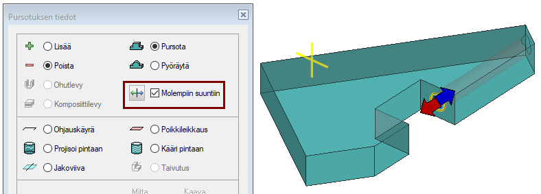Valitse pursotuksen lisämääritys: Molempiin suuntiin. (Tämän olisi toki voinut valita jo heti pursotusta tehtäessä)