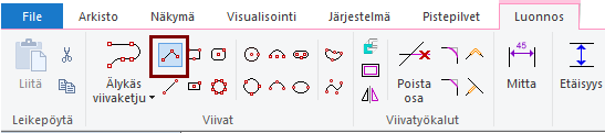 Kun kohdistin näyttää X- tai Y-symbolia, napsauta kohdistinta, jotta viiva lukittuu ao. suuntaan. Viiva saa tällöin yhdensuuntaisuusehdon (= -symboli)