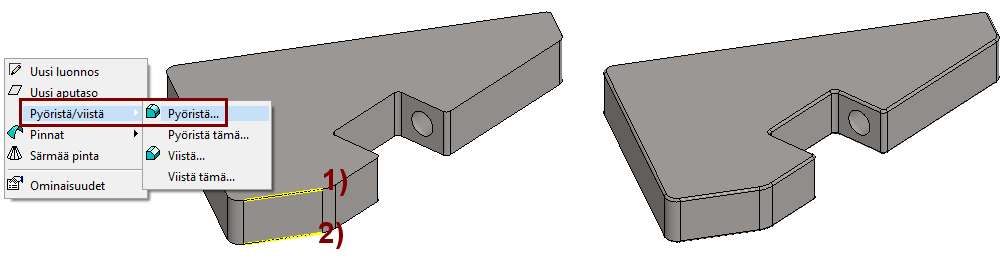 Tilannekohtainen valikko: Pyöristä/Viistä > Pyöristä.