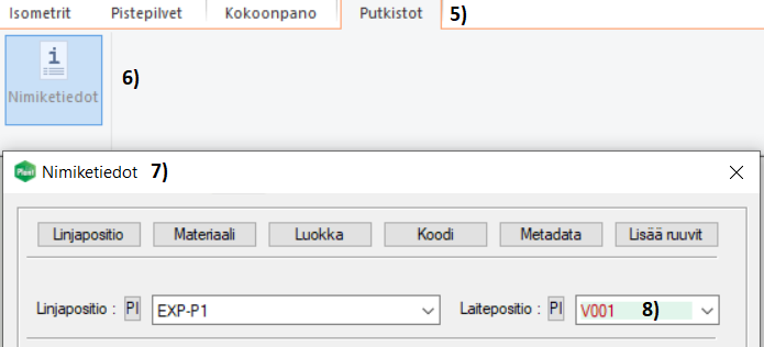 Putken Nimike, kuvassa 5). Mikäli useampi putkinimike vastaa hakuehtoja, löydät vaihtoehdot suurennuslasin avulla.