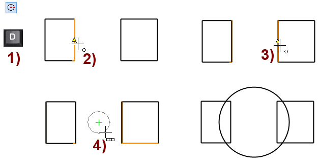 Pikanäppäintä D, kun halutaan piirtää jotain kahden pisteen puoliväliin.
