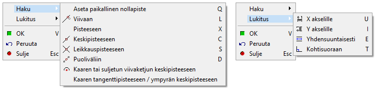 Vie kohdistin viivan/pisteen lähelle ja valitse aputoiminto tai paina näppäintä: