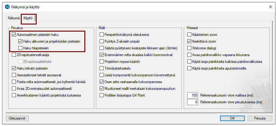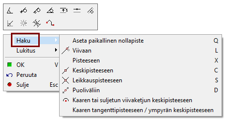 Käyttämään automaattihakuja (päätepisteisiin, keskipisteisiin, ympyrän ns. neljännespisteissin, risteyspisteisiin ja viivoihin).