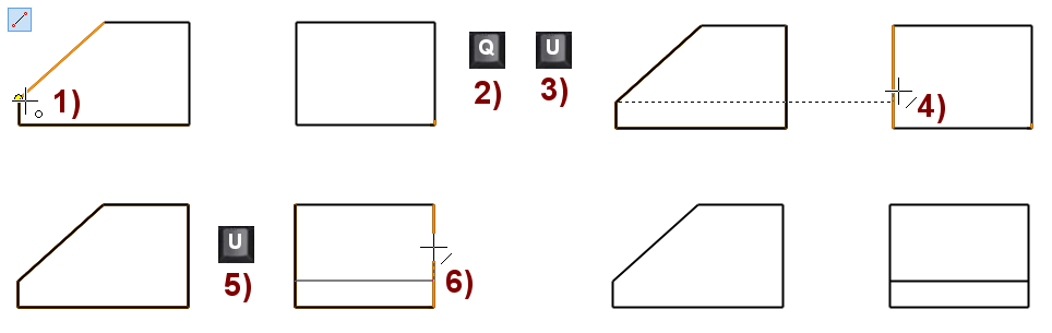 Tutustutaan myös näppäimistökomentoihin, joilla voidaan ohjata kohdistimen tarttumista. Näppäimistökomennoilla voidaan myös ohjata viivaa piirtymään vaaka- ja pystysuuntien lisäksi viivalle yhdensuuntaiseksi tai kohtisuoraksi.