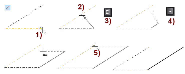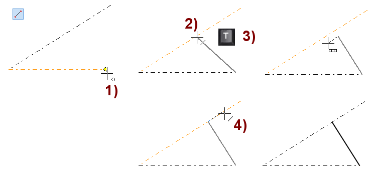 Vie kohdistin referenssiviivan päälle ja napsauta sitä, jolloin piirrettävän viivan päätepiste tulee viivalle. Kuva 4).