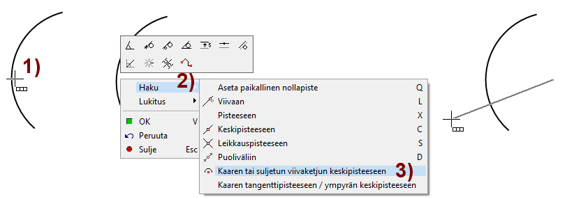 Valitse Kaaren tai suljetun viivaketjun keskipisteeseen. Kuva 3).