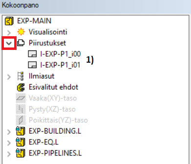 Mikäli piirustukset löytyvät alikokoonpanon EXP-PIPELINES kokoonpanopuusta, olet ollut muokkamassa kyseistä alikokoonpanoa isometrin teon aikana. Tämä ei varsinaisesti haittaa, joten voit jatkaa eteenpäin.