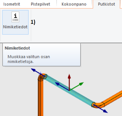Ikkuna Nimiketiedotaukeaa, josta näet kyseisen putkikomponentin tiedot, kuvassa 2).