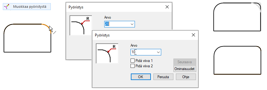 Syötä pyöristyssäde. Kuva 3).