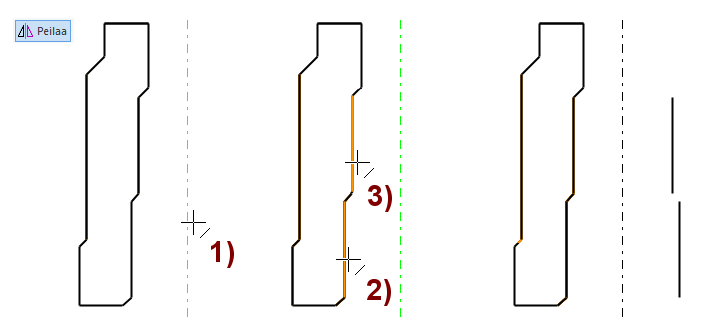 Osoita peilattavat viivat 2), 3) jne.