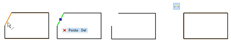 Viiva poistuu, mutta viereiset viivat eivät palaudu risteyskohtiin, kuten pyöristyksen poistossa tapahtui.