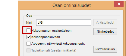 Poista valinta: Kokoonpanon osaluetteloon.