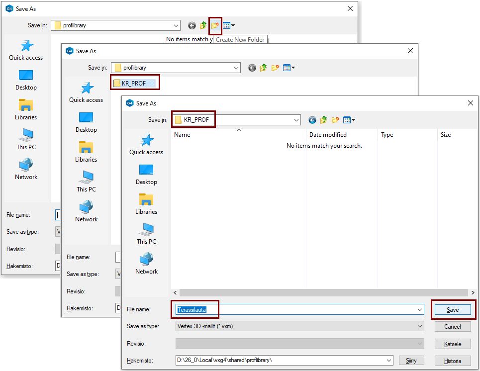 Tallenna poikkileikkaus profiilikirjastoon