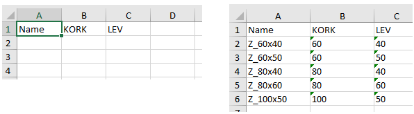 Mittataulukossa pitäisi näkyä kaksi riviä LEV ja PAKS.