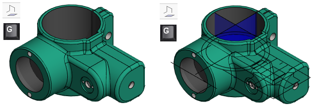 Jos asetus Näytä geometriavihje kohdistimessa on valittuna, voit katsoa myös muiden, kuin muokkauksessa olevan alikokoonpanon osien tietoja.