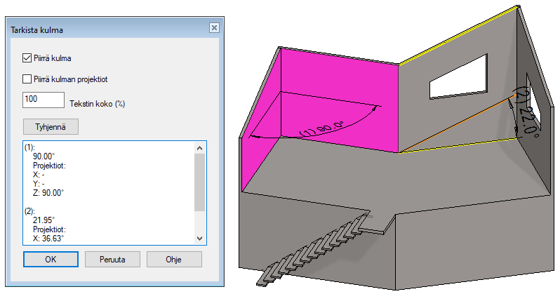 Valitse Piirrä kulma, jos haluat piirtää malliin kulmamitan.