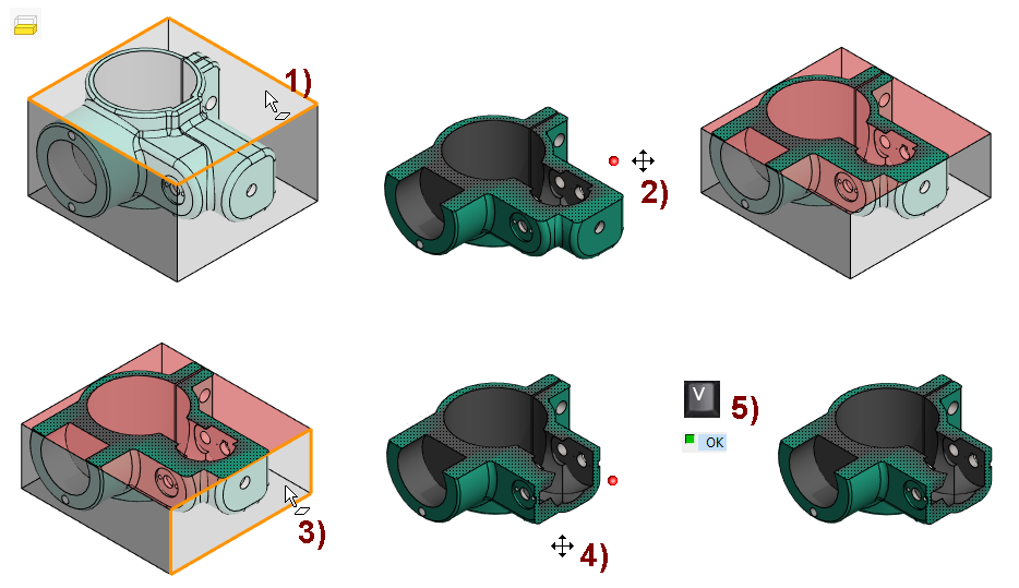 Kun haluat piilottaa jonkun alikokoonpanorakenteen, niin paina Alt-näppäin pohjaan, ja napsauta osaa, jolloin osan sijaan tulee valituksi kokoonpano. Seuraava napsautus valitsee ylemmän tason alikokoonpanorakenteen jne., kunnes ylimmän tason rakenteen valinnan jälkeen seuraava napsautus palaa taas pelkän osan valintaan. Tällöin haluttu alikokoonpanorakenne voidaan piilottaa osineen.