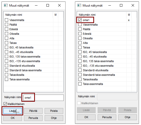 Tallenna omia näkymiä (mallin katsomissuuntia)