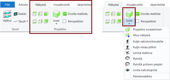 Valitse tarvittaessa Näkymä-nauhavalikon Projektio-ryhmästä Perspektiivi.