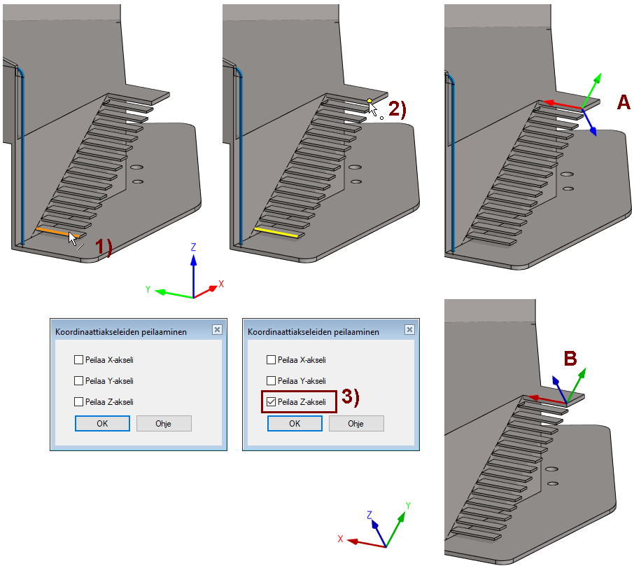 Käyttökohteita, kun osaa tai alikokoonpanoa ollaan muokkaamassa