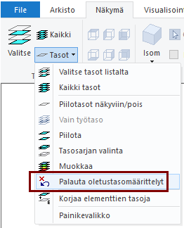 Näkymä-välilehti > Tasot-ryhmä > Tasot > Palauta oletustasomäärittelyt.