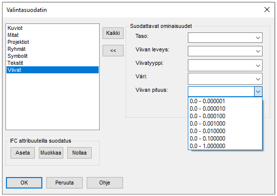 Ohjelma avaa valikon, josta voit valita tarkemmin suodatettavia ominaisuuksia.